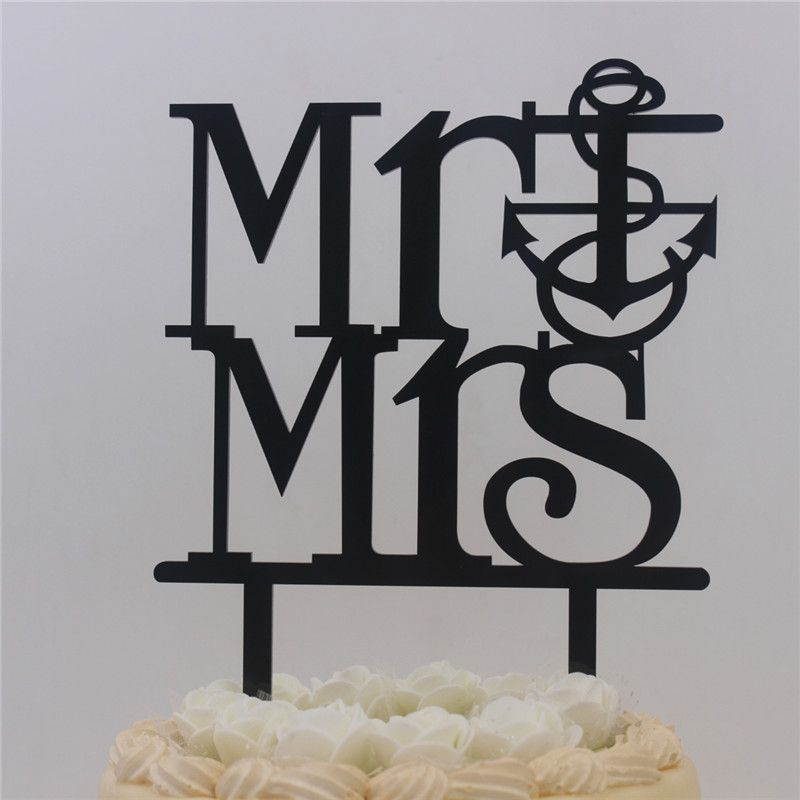 2019 Script Mr Mrs Anchor Wedding Cake Topper Silhouette From