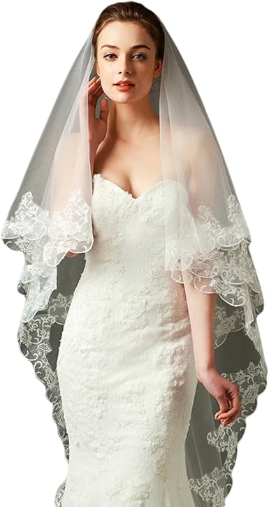 Veilbridal Long Mantilla Veils Catholic Single Layer Applique Lace