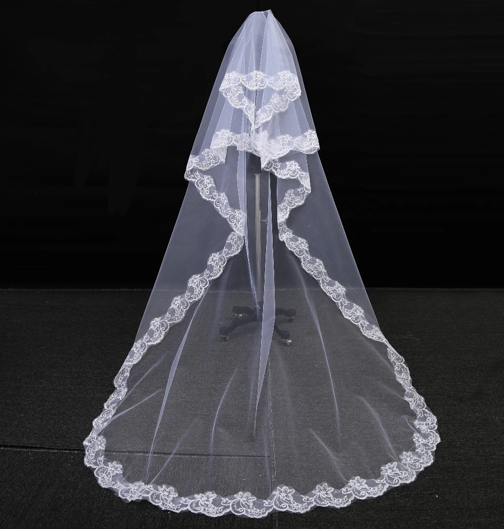 Luxury Bridal Veils Long Veils Soft Tulle Three Meters Long Lace