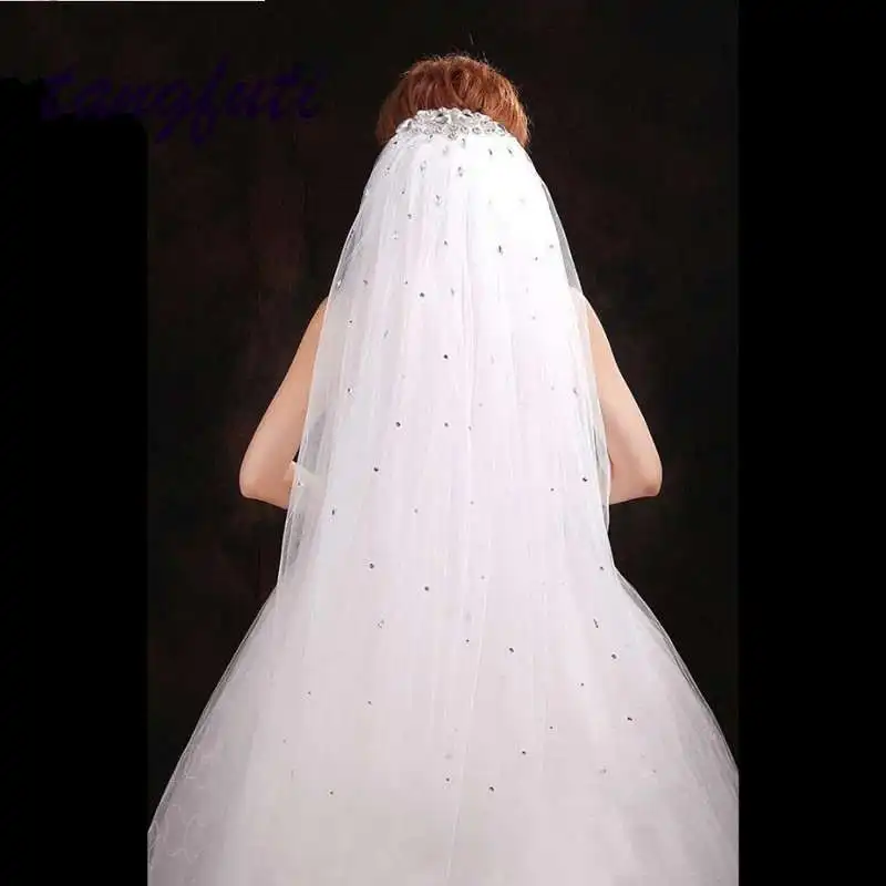 2016 Rhinestone Soft Tulle White Ivory Wedding Veils With Comb