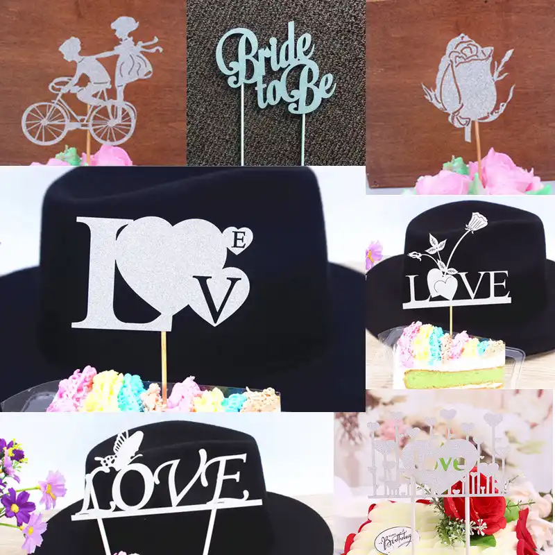 Bride Groom Cake Topper Love You Heart Mr Mrs Glitter Cake Cupcake