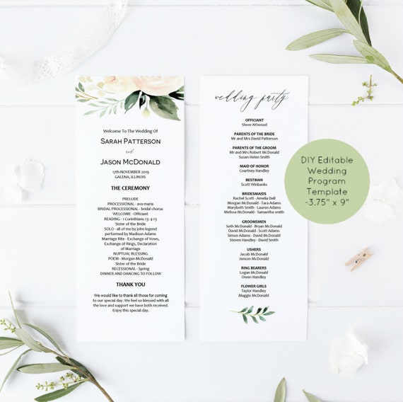 Blush Wedding Program Printable Wedding Ceremony Program Etsy