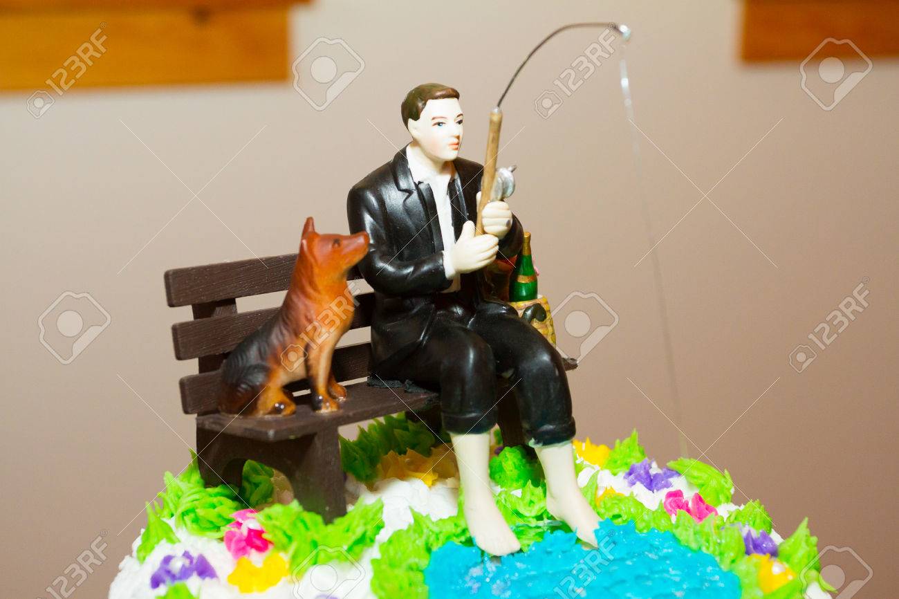 Cake Topper At A Wedding Reception With The Groom Fishing And