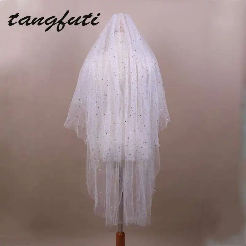 Two Layer Bridal Veil White Cut Edge White Star Shape Wedding Veil