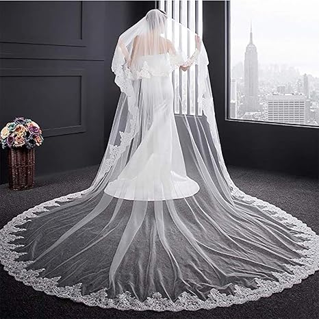 Gorgeous Wedding Veils One Layer Tulle Appliques Cathedral Length