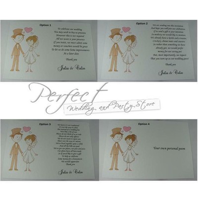 White Wedding Honeymoon Cash Money Gift Poem Personalised Inserts