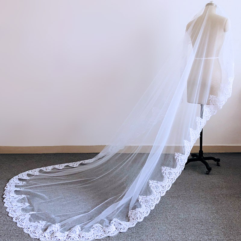 From cathedral bridal veils to blusher veil fashions theres a veil thats the perfect length and design for you to become an even more beautiful bride. Wedding veils cathedral length 2t 3m white ivory applique with comb in stock.