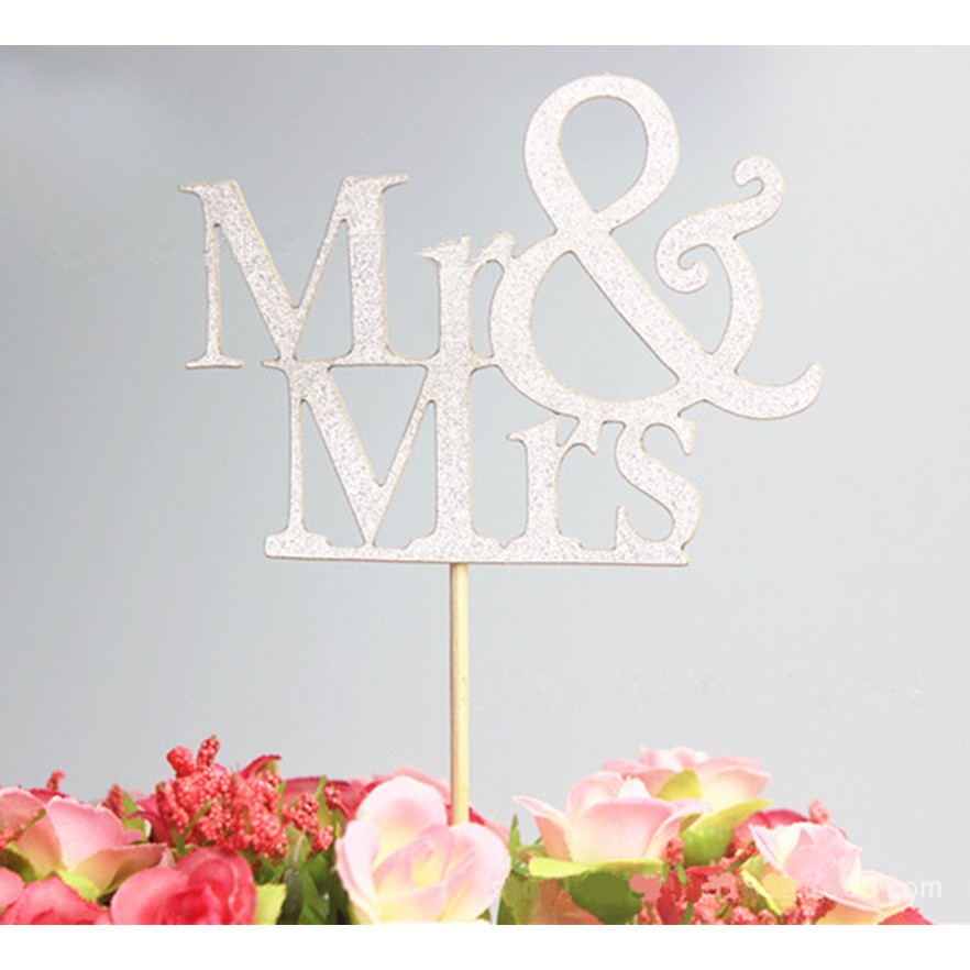 Mr Mrs Romantic Shiny Cake Topper Wedding Party Top Letter Decor H