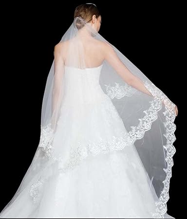 Amazon Com Long Simple Elegant Lace Appliques Wedding Veil