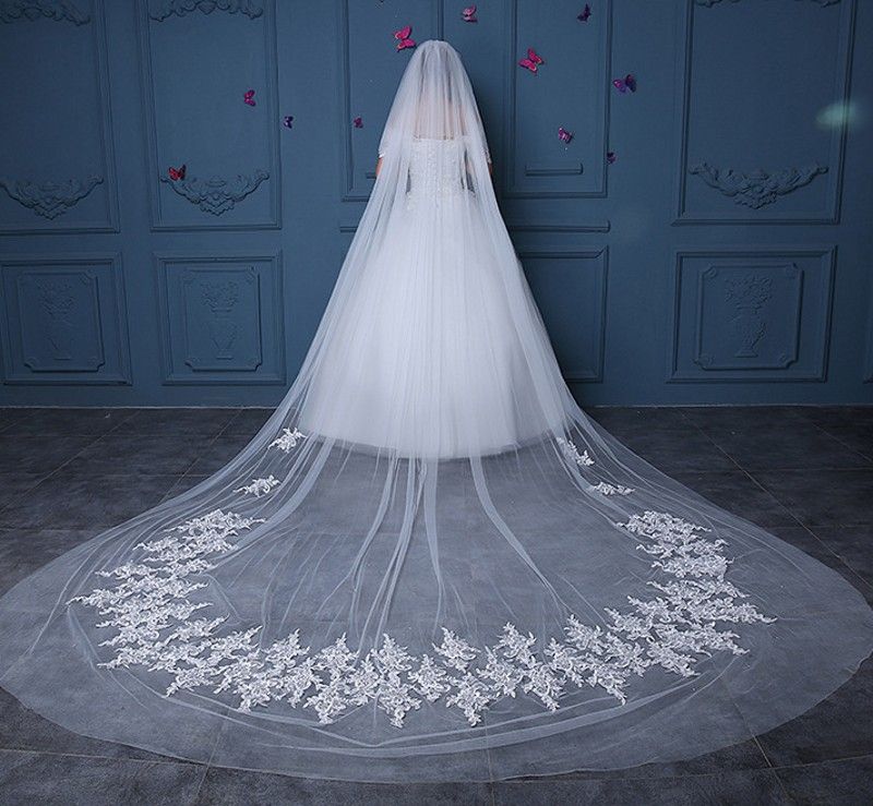 Ivory White 3 Meter Cathedral Wedding Veils Long Lace Edge Bridal