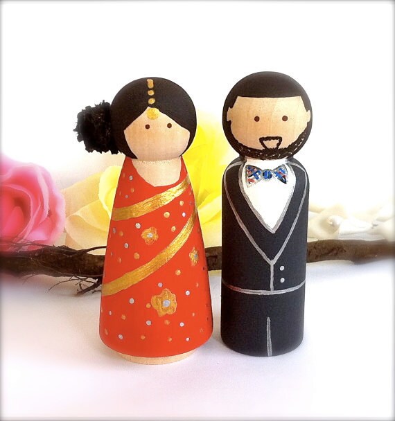 Ethnic Wedding Cake Toppers Indian Sari Bride And Groom Custom Etsy