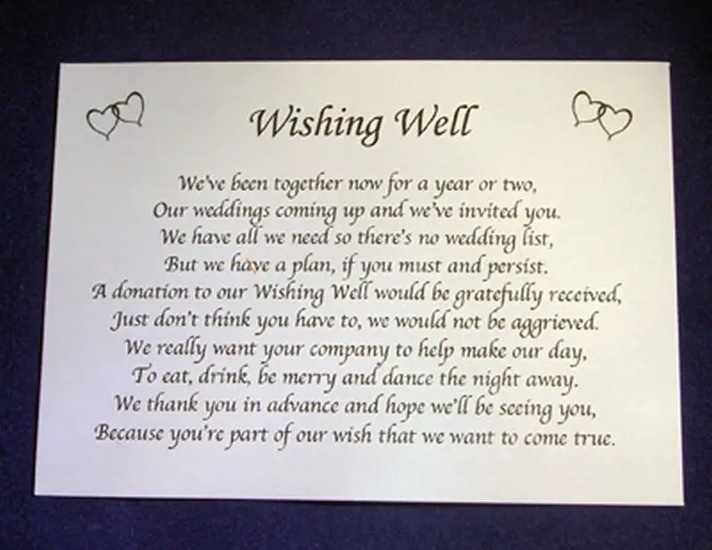 10 X Personalised Wedding Money Wish Poem Gift Poem Cards Etsy