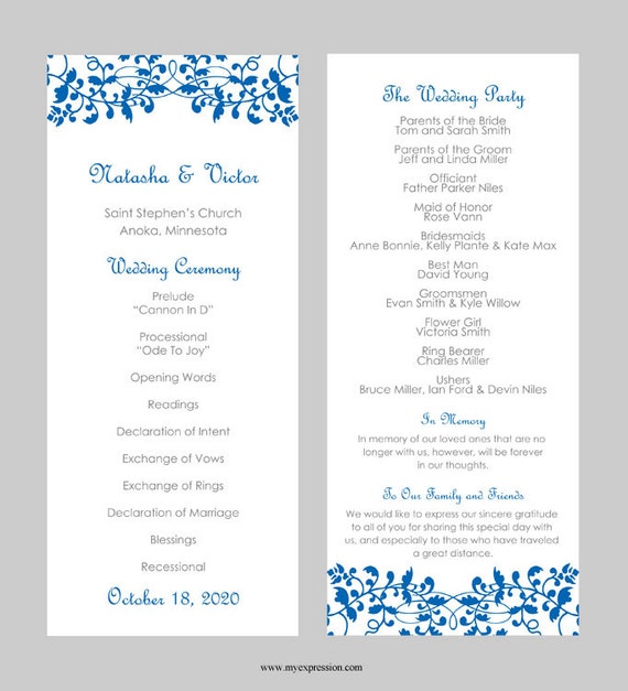 Royal Blue And Silver Wedding Program By Weddingprintablesdiy