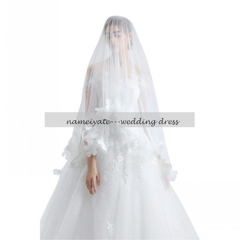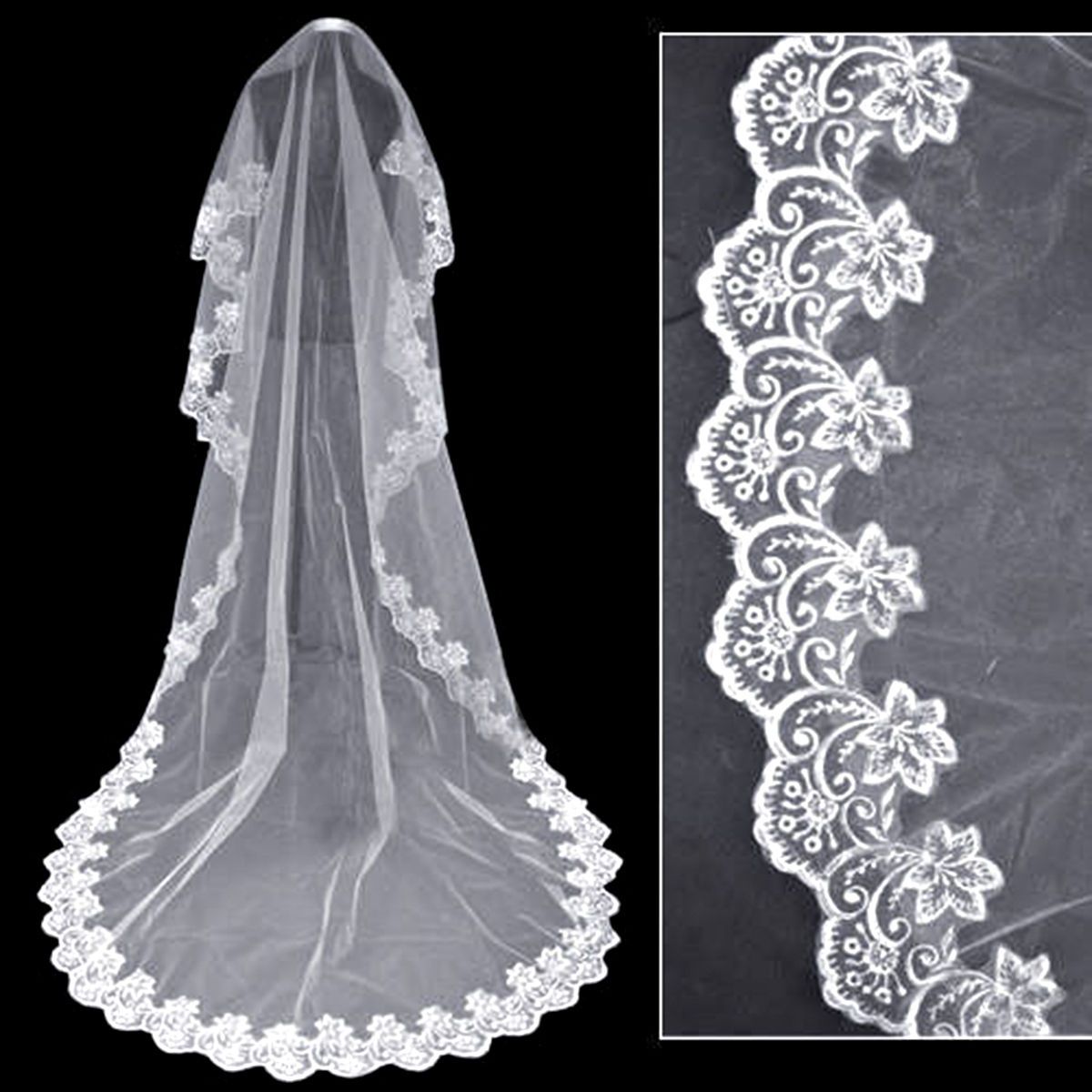 Wedding Veil One Tier Cathedral Veils Lace Applique Edge Scalloped
