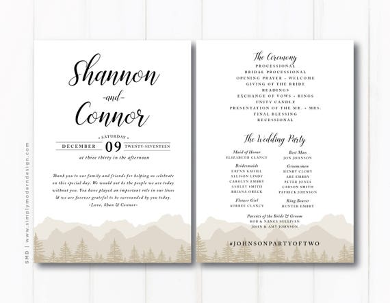 Rustic Mountain Wedding Program Wedding Party Reception Etsy