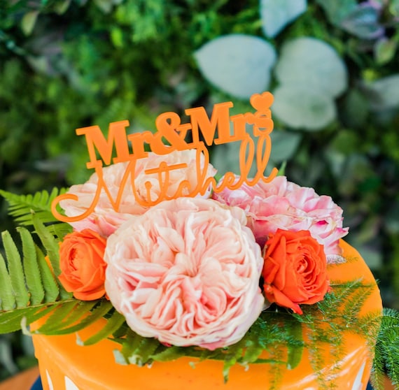 Personalized Mr And Mrs Cake Topper Wedding Cake Heart Toppers Etsy