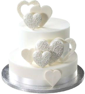 Two Tier Heart Shaped Wedding Cake In White And Red With Bride And