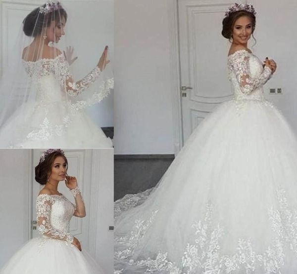 Discount 2018 Luxury Lace Wedding Dresses Off Shoulder Long