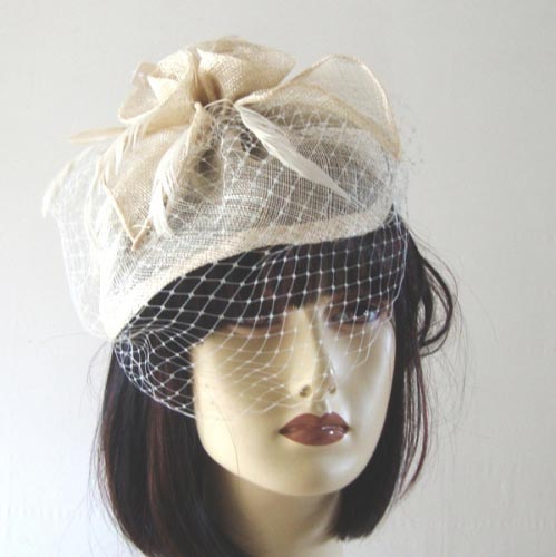 Wedding Veil Bridal Hat Vintage Style Felt Hat Off White Perch