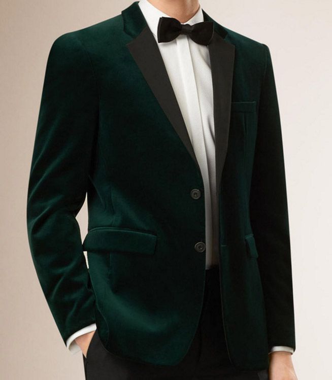 Mens Velvet Blazers Custom Made Slim Fit Dark Green Velvet Jacket