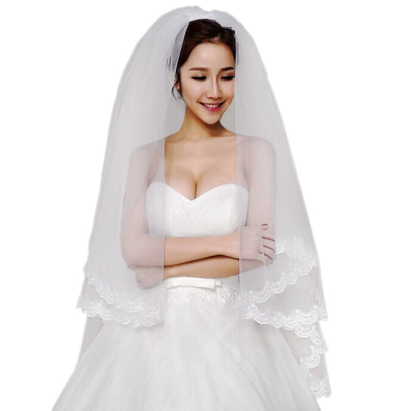 China Two Veils Lace Wedding Veil With Comb China Veil Lace Veil