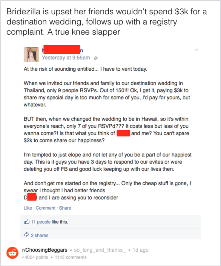 Entitled Bride Furious Guests Won T Pay 3000 To Go To Her