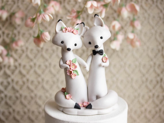 Arctic Fox Wedding White Wedding Cake Topper Winter Etsy