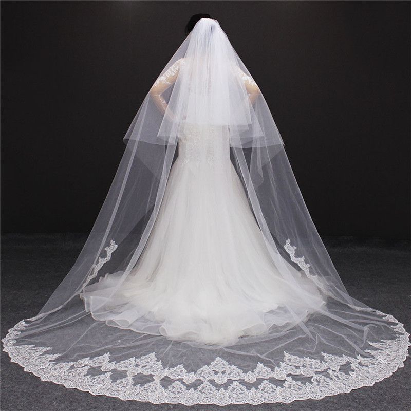 2 Tiers Wedding Veil With Sequins Lace 3 Meters High Quality Tulle