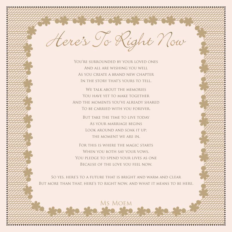 Heres to right now tenses a wedding poem a realistic wedding poem epilogue original wedding poem to love is life i choose you a wedding poem by continue reading 13 original wedding poems. Realistic wedding poem ms moem at msmoem aka amy at iwantapoem. This is just the beginning of a path well travel together with obstacles to overcome and possible storms to weather.