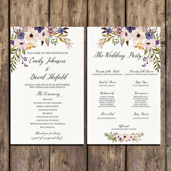 Wedding Program Printable Bohemian Pink And Blue Floral Etsy