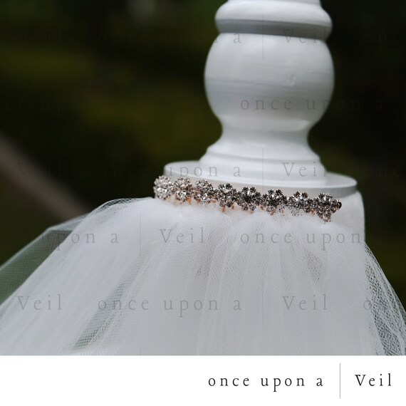 Jeweled wedding veils. Is set just inside of the edge of this ivory fingertip wedding veil. Aukmla bridal wedding veil with lace edge and comb attached 3 tiers chapel length white. There are so many wedding veil styles from stunning cathedral length veils to fun and flirty birdcages to demure bandeau veils.
