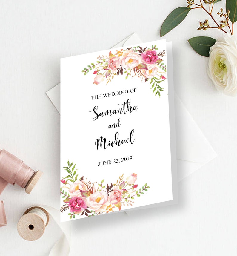 Wedding Program Template Folded Folded Wedding Programs Etsy