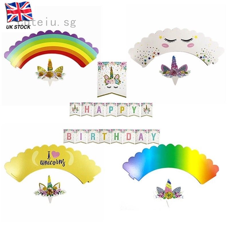 Unicorn Rainbow Cupcake Wrap Decor Birthday Wedding Cake Topper