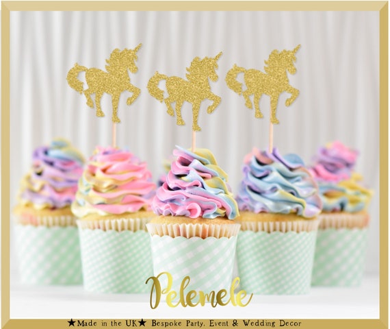 Unicorn Cupcake Toppers Glitter Unicorn Cupcake Toppers Etsy