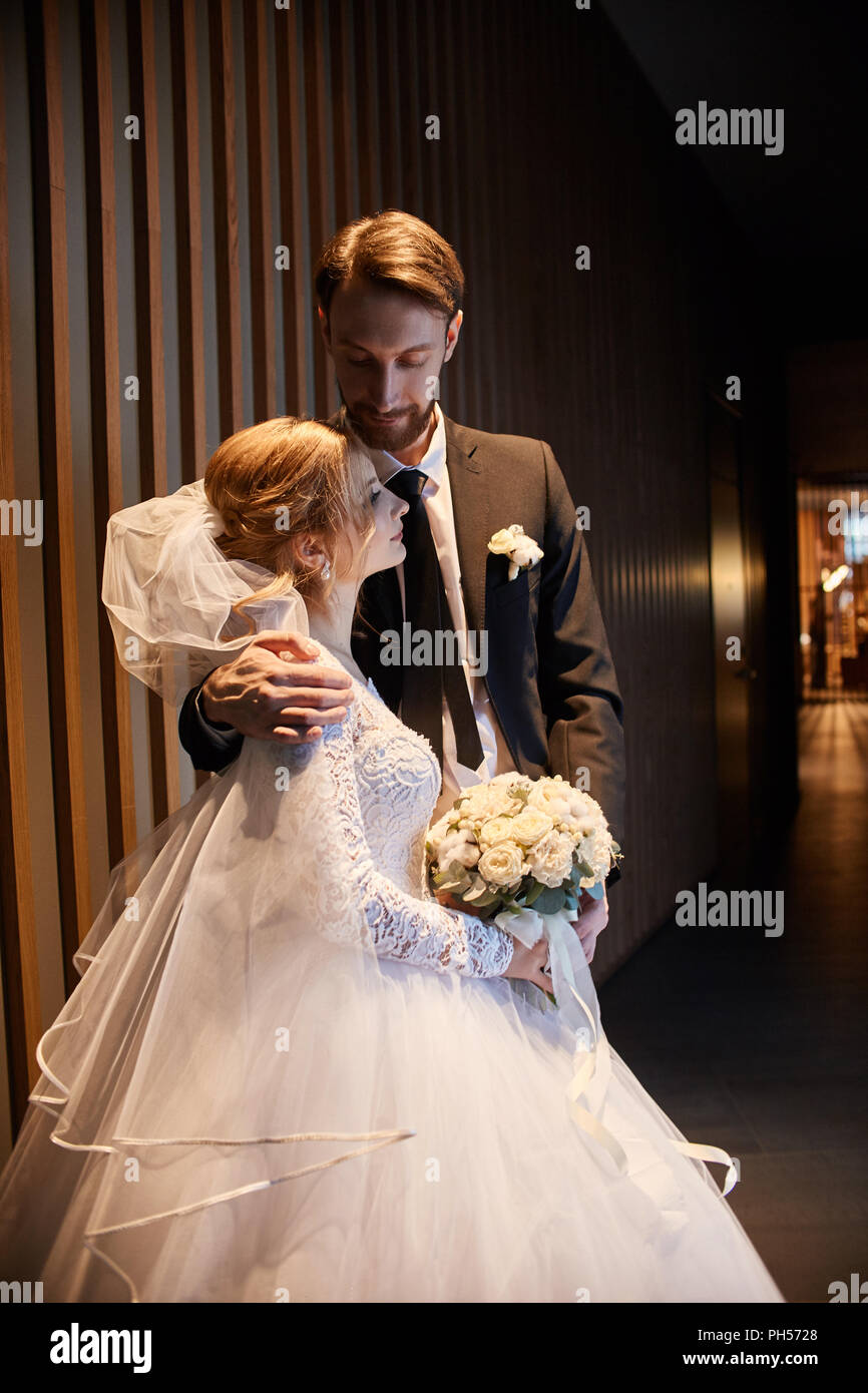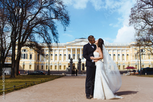 Wedding Couple Hugging And Kissing The First Day Of Life Together